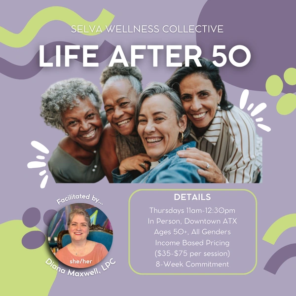 A supportive therapeutic process group for adults 50+ to explore the relationships, transitions, and questions that come with this stage of life. Together, we’ll make space for conversations about family and partnership, identity, work and retirement, health and aging, grief and loss, substance use, loneliness, and finding purpose. This is a place to be heard, understood, and supported.
